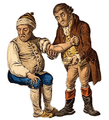 Back in the Bad Humours Era - The Middle Ages onwards - people genuinely believed that draining blood cured just about everything. Got a headache? Bloodletting. Are you feeling tired? Bloodletting. Stubbed your toe? Er! … Bloodletting.